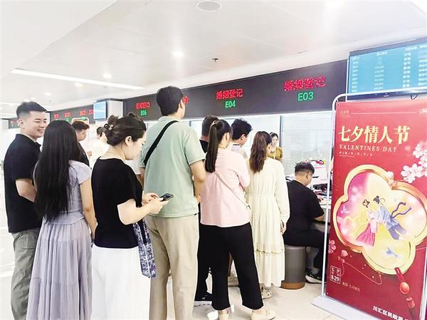 8月29日,農(nóng)歷七月初七,是中國(guó)傳統(tǒng)節(jié)日七夕節(jié)。這個(gè)承載著牛郎織女美麗傳說(shuō)的日子,成為許多新人眼中領(lǐng)取結(jié)婚證的“良辰吉日”。當(dāng)天,川匯區(qū)民政局婚姻登記處迎來(lái)今年又一個(gè)結(jié)婚登記高峰,不少新人選擇在這個(gè)極具浪漫色彩的日子邁入婚姻殿堂。