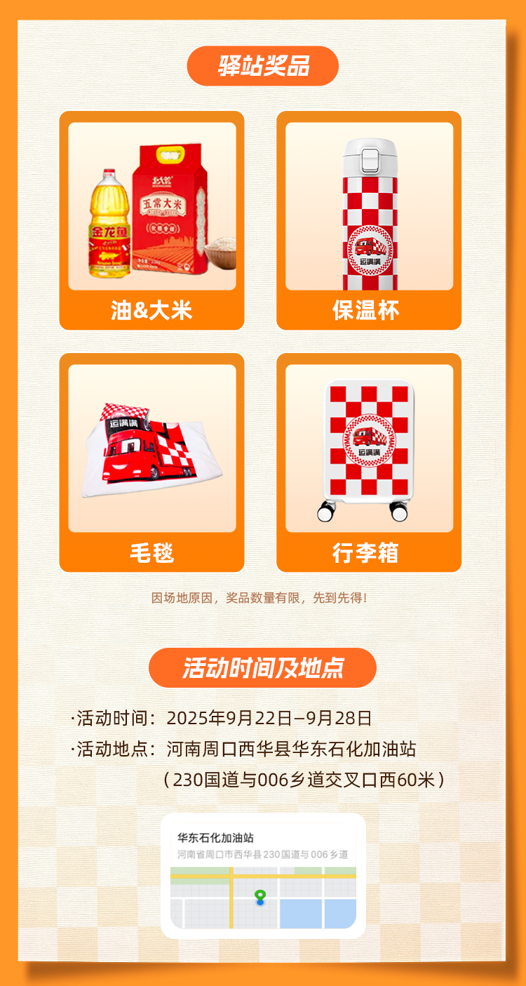 時(shí)值秋分,中原大地迎來(lái)一片豐收盛景。國(guó)內(nèi)領(lǐng)先的貨運(yùn)數(shù)字化平臺(tái)運(yùn)滿滿近日宣布,將于9月22日至28日期間,在河南周口市西華縣華東加油站設(shè)立“豐收驛站”,為奔波在秋收一線的卡車司機(jī)提供免費(fèi)休息、熱水、泡面等暖心服務(wù)。9月23日秋分當(dāng)天,還將在該站點(diǎn)舉辦“致敬豐收擺渡人”主題儀式,向保障糧食運(yùn)輸?shù)目ㄜ囁緳C(jī)表達(dá)誠(chéng)摯謝意。